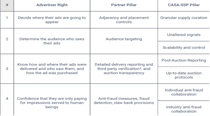 Omnicom Media Group’s Council on Accountability and Standards in Advertising (CASA) is a collaboration of OMG agencies, clients, and media partners committed to enhancing buyer control, seller transparency and brand safety for advertisers across developing media channels by empowering buyers by defining and core advertiser rights and driving corresponding media owner capabilities that empower marketers and hold partners accountable: